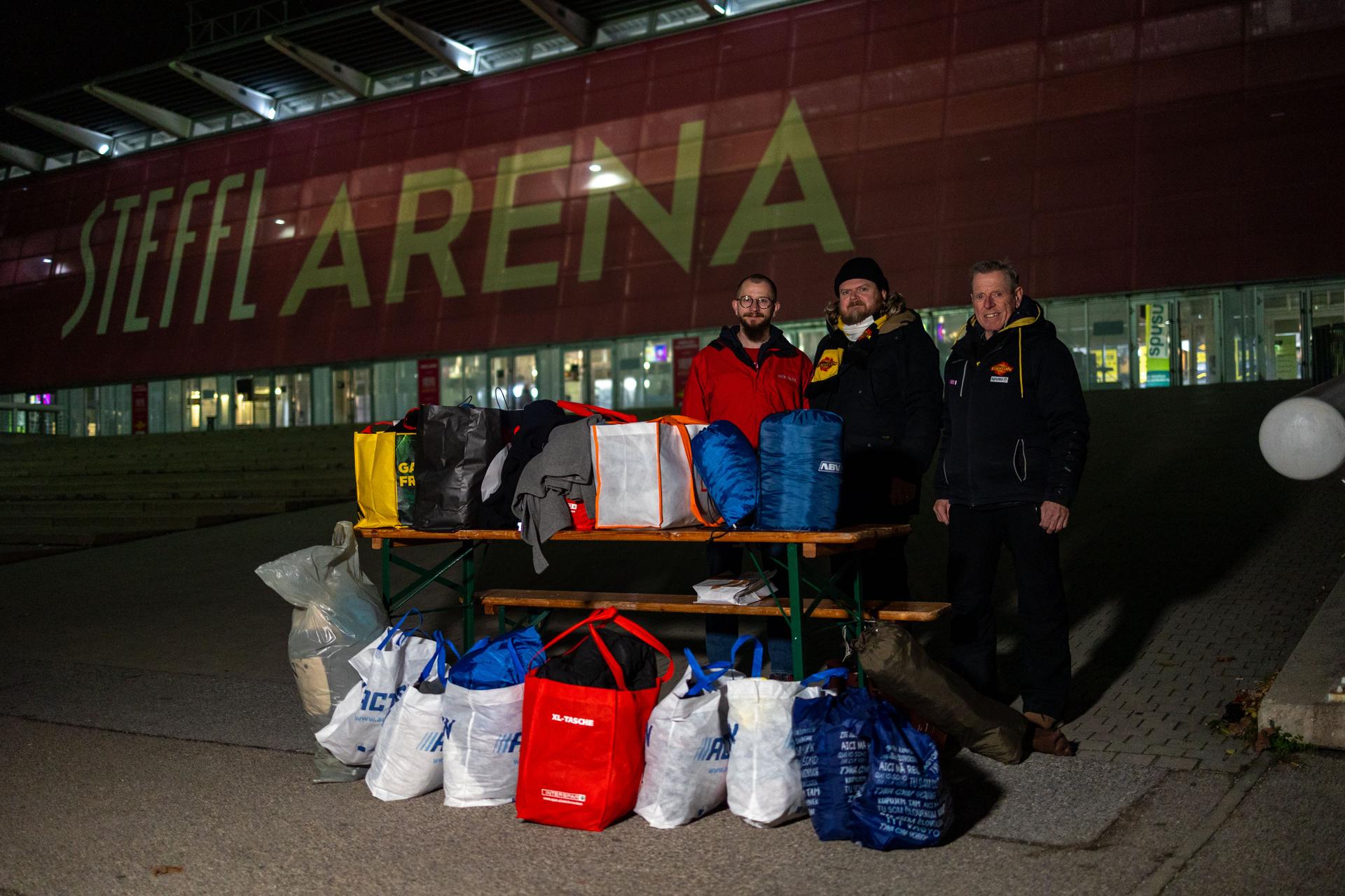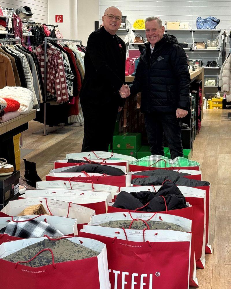Wie in den vergangenen Jahren auch, hat unser Hauptpartner STEFFL im Vorfeld der Aktion wieder eine großzügige Kleiderspende getätigt. Der Charity-Beauftragte der Vienna Capitals, Erwin Steiner, nahm 14 große Säcke mit neuen Winterjacken entgegen.